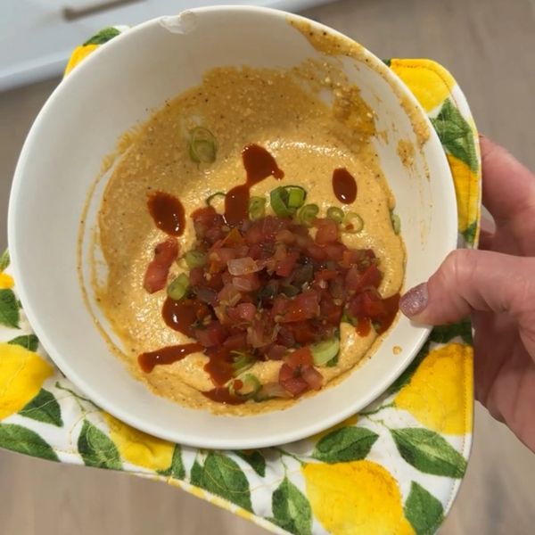 - Add nutritional yeast, cheddar, and taco seasoning to cottage cheese